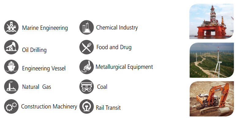 Our products are mainly used in Marine Engineering,Oil& Gas Exploration,Engineering Vessel,Natural Gas,Construction Machinery,Chemical Industry,Food and Drug,Metallurgical Equipment,Coal,Rail Transit.