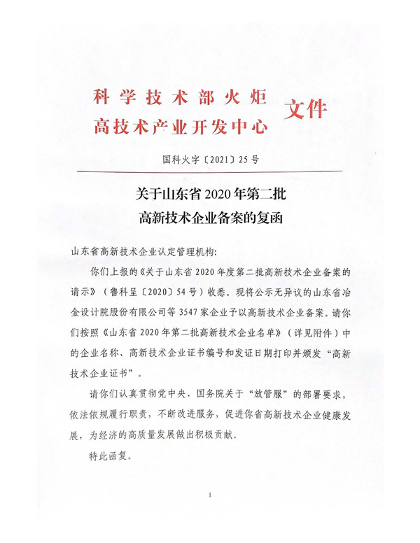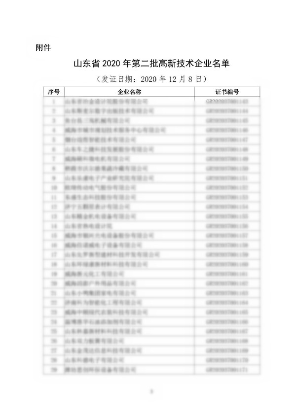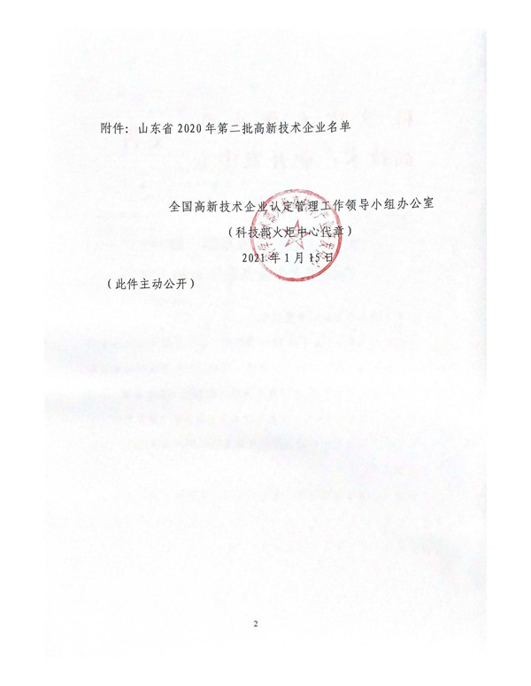 近期,全國高新技術(shù)企業(yè)認(rèn)定管理工作領(lǐng)導(dǎo)小組辦公室發(fā)布了《關(guān)于山東省2020年第二批高新技術(shù)企業(yè)備案的復(fù)函》(國科火字〔2021〕25號(hào)),并公布了《山東省2020年第二批高新技術(shù)企業(yè)名單》,煙臺(tái)泰悅流體科技有限公司榜上有名,獲批高新技術(shù)企業(yè)。
