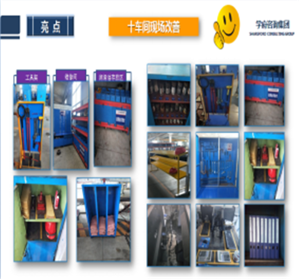 9.9-11號(hào)廣州學(xué)府咨詢老師車賀威、謝宏明入駐公司進(jìn)行第三期咨詢推進(jìn)工作,本次咨詢主要是生產(chǎn)、辦公樓、檢測(cè)中心現(xiàn)場(chǎng)巡視,對(duì)第二期工作布置進(jìn)行檢查總結(jié)。各車間生產(chǎn)現(xiàn)場(chǎng)均有較大改觀,通過檢查咨詢老師及推進(jìn)小組均認(rèn)為車間行動(dòng)速度比較迅速,推進(jìn)工作有條不紊,獲得咨詢老師及公司領(lǐng)導(dǎo)好評(píng)。