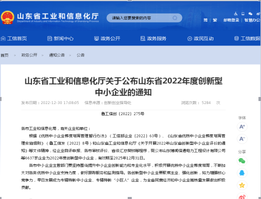 ?泰悅流體入圍山東省創(chuàng)新型中小企業(yè)名單