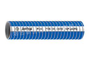 ? 軟管結(jié)構(gòu): 管壁有多層 POLYPROPYLENE 聚合物膜及合成纖維織物加強層構(gòu)成,內(nèi)外兩層螺旋金屬線纏繞,導(dǎo)靜電設(shè)計,顏色藍色。特殊要求可提供尼龍內(nèi)層材料
